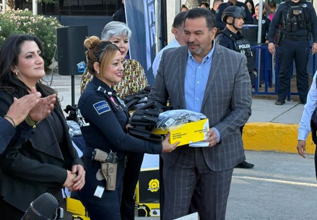 El equipo entregado incluye uniformes, chalecos antibalas nivel IIIA, fornituras, lámparas, candados de mano y pierneras