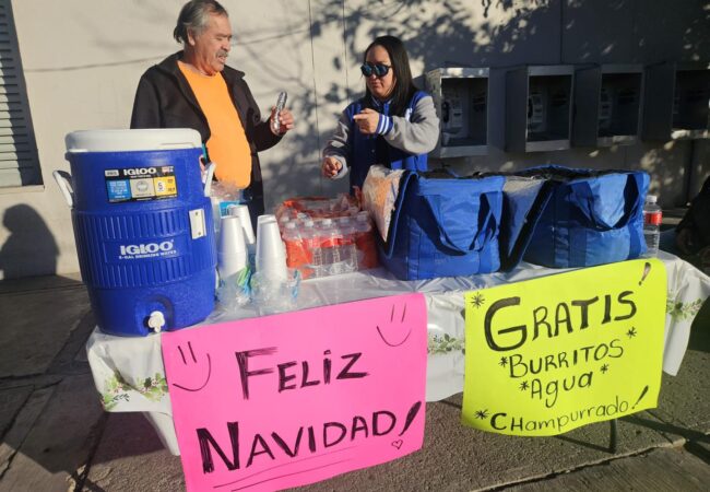 Este año, Claudia repartió 230 burritos, champurrado y botellas de agua