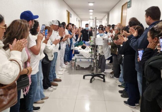 Familiares, amigos y personal del hospital lo despidieron con aplausos en el pasillo