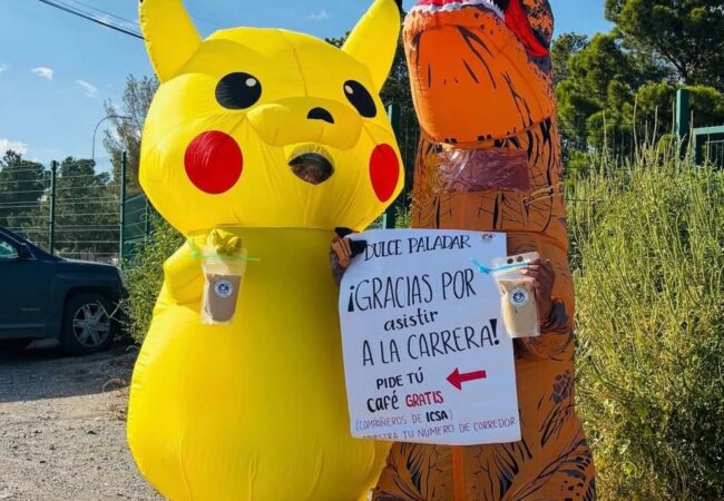 Lo que hizo aún más llamativo este gesto fueron las divertidas botargas de dinosaurio y Pikachu, que acompañaron la entrega y robaron sonrisas a corredores y espectadores