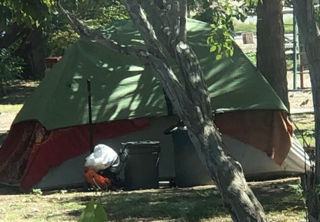 Los vecinos señalan que el individuo instaló una casa de campaña en el área verde, donde incluso improvisó un tendedero