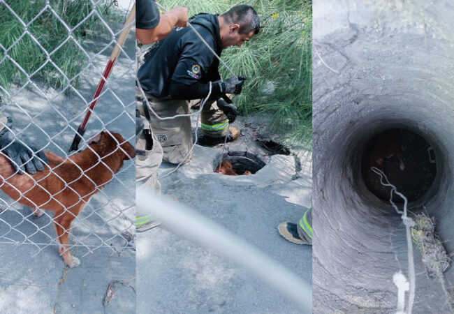De acuerdo con la información, el perrito cayó en una alcantarilla de unos tres metros de profundidad y 50 centímetros de ancho aproximadamente, que se encuentra ubicada en un terreno baldío