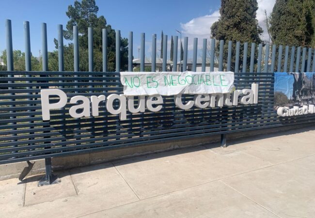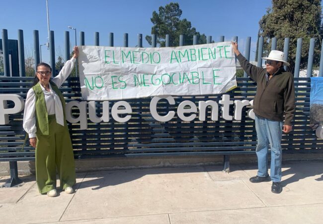 María Antonia Ríos Martínez se presentó como vecina del Parque Central y activista social del organismo Frente Verde en su protesta y manifestación a un lado del pretendido Oxxo que se busca instalar en el lado extremo del Parque Central Oriente