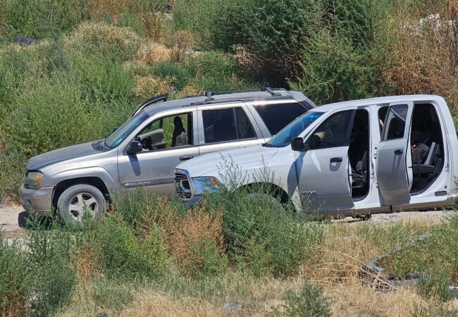 El accidente involucró a una camioneta Ford F-150 negra, un Nissan Altima guinda, un Mitsubishi blanco y un Hyundai gris