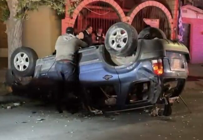 El conductor del vehículo Mustang color negro perdió el control de la unidad