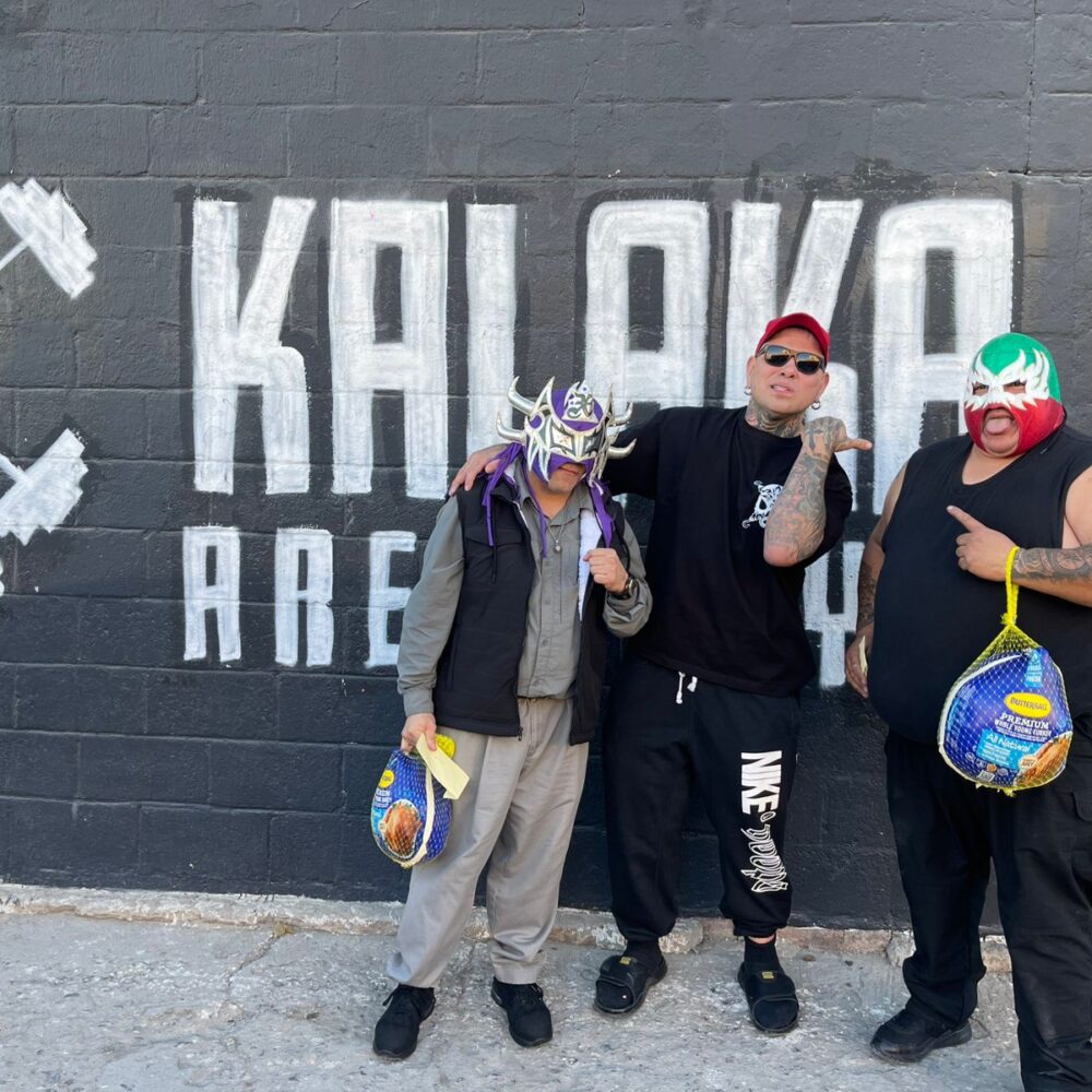 En una acción solidaria, Pagano entregó pavos y bonos a luchadores locales...